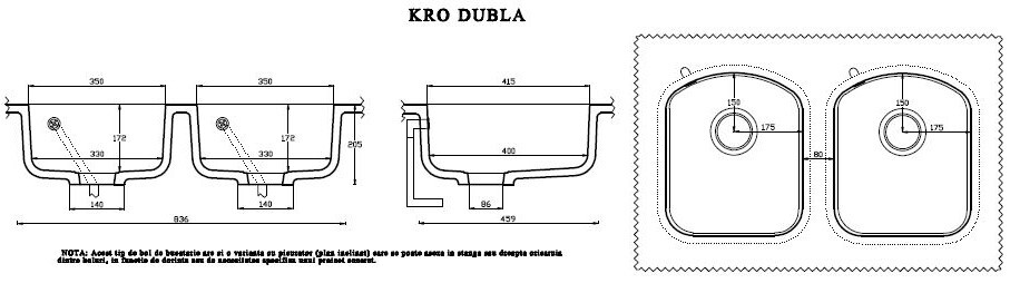 K-Ro Dupla medencés mosogató pulttal egyben gyártva
