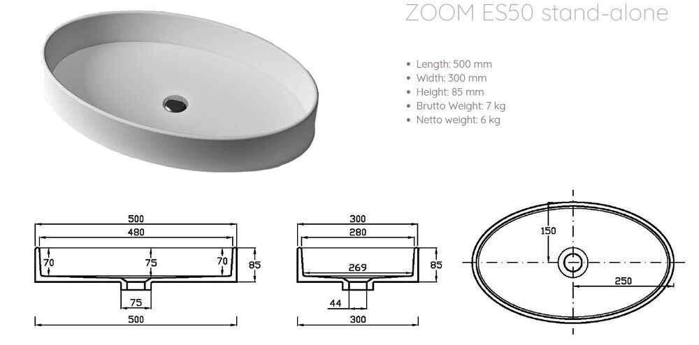 A Kuma ZOOM ES50 önálló pultra helyezhető mosdókagyló
