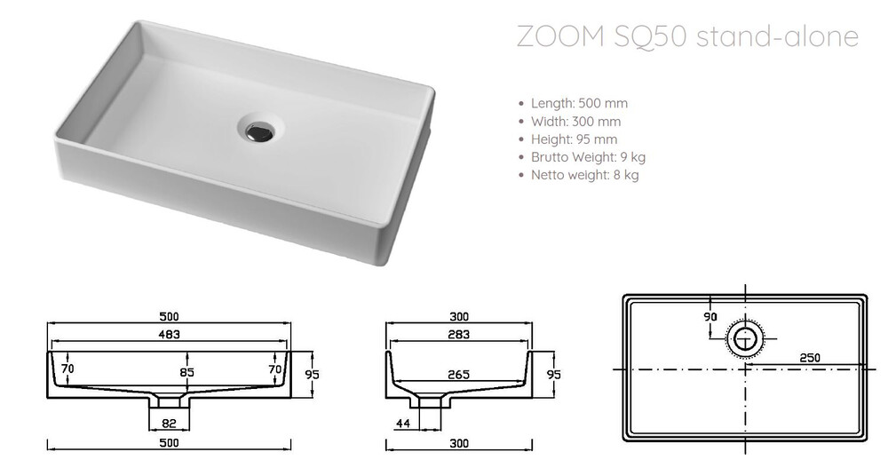 A Kuma ZOOM SQ50 önálló pultra helyezhető mosdókagyló